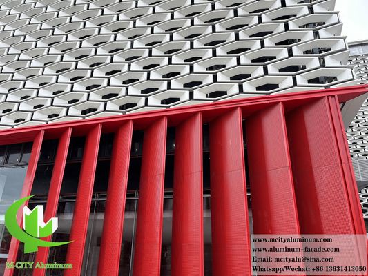 Hoogwaardige architectonische aluminium panelen ontworpen voor moderne gevels van gebouwen, met een dikte van 3 mm en een nauwkeurig geperforeerd schaduwontwerp.