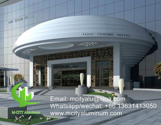 Stenen kleur aluminium gevelpaneel bekleed wandpaneel met CNC turret ponsen, geperforeerde ontwerpen en gebeeldhouwde decoratieve patronen voor exterieur bouwtoepassingen.